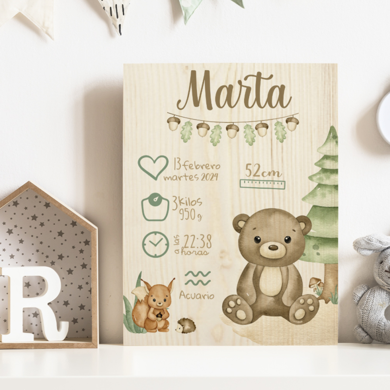 El recuerdo perfecto de su nacimiento Cuadros de madera personalizados con todos sus datos. Natural, tierno y único.