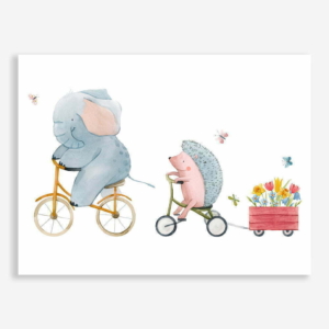¡Consigue ya tu cuadro Animales en bici con flores y transforma su habitación en un espacio único y lleno de personalidad