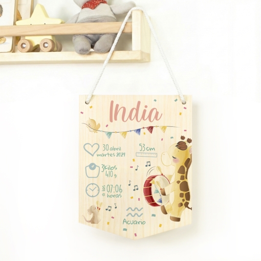 Decorar la habitación de tu bebé con un banderín de madera personalizado no solo añade un toque estético, sino también emocional. Cada vez que veas los detalles de su nacimiento en el banderín, recordarás ese momento tan especial. Además, con su diseño encantador, este banderín se convierte en el centro de atención de la decoración del cuarto.