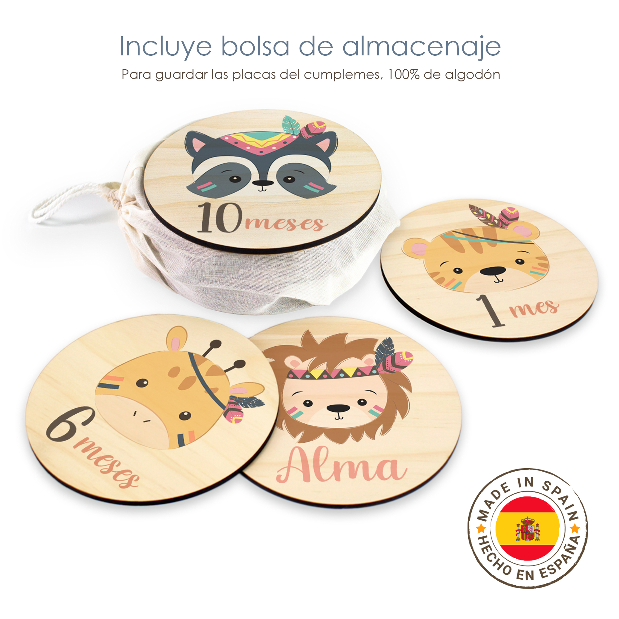 El set cumplemes animales incluye placas de madera decoradas con un diseño delicado y orignal, perfectas para marcar cada mes del primer año de tu bebé. Las placas están hechas de madera de alta calidad. Estas placas no solo son funcionales, sino que también añaden un toque decorativo a las fotografías de tu pequeño, haciendo que cada imagen sea aún más especial.
