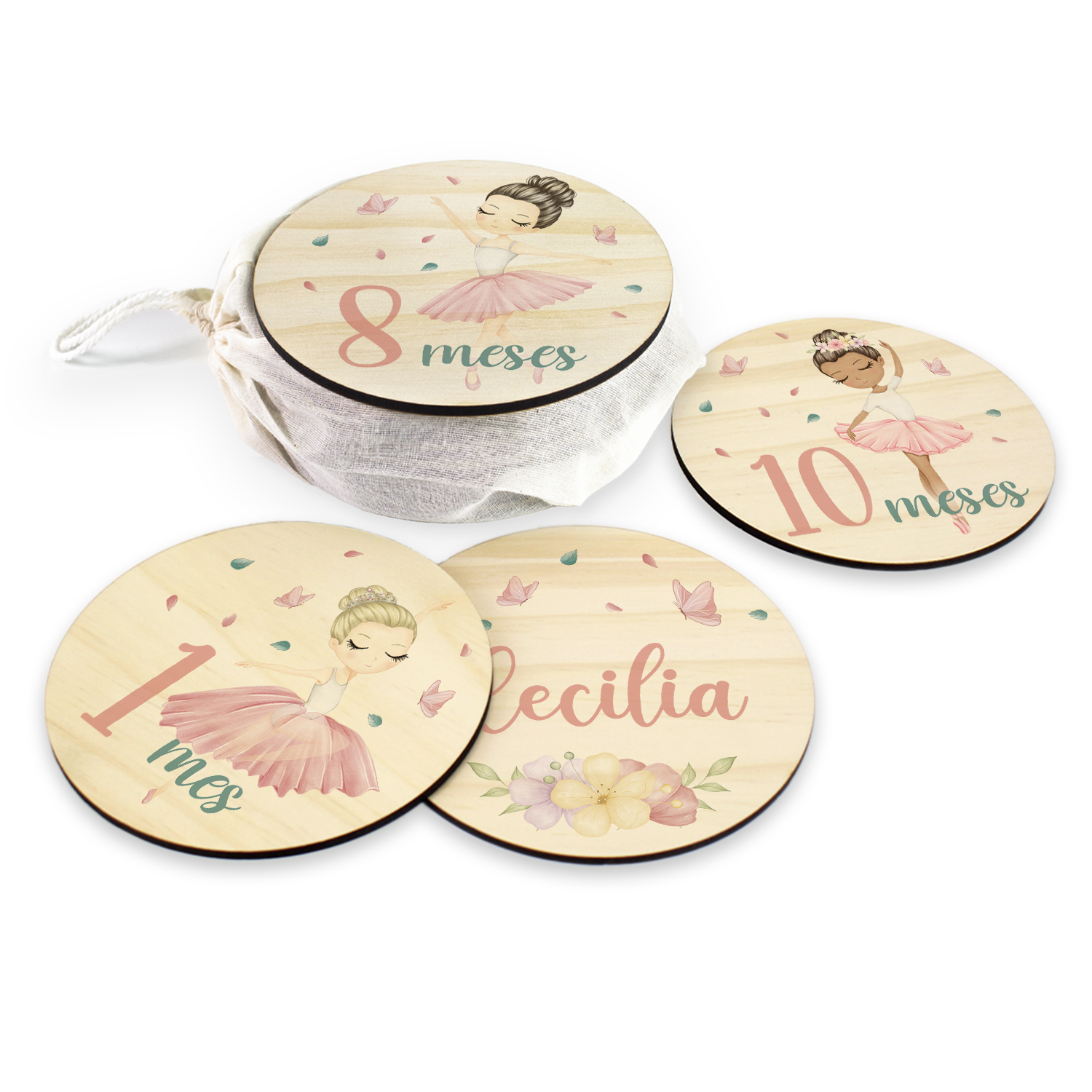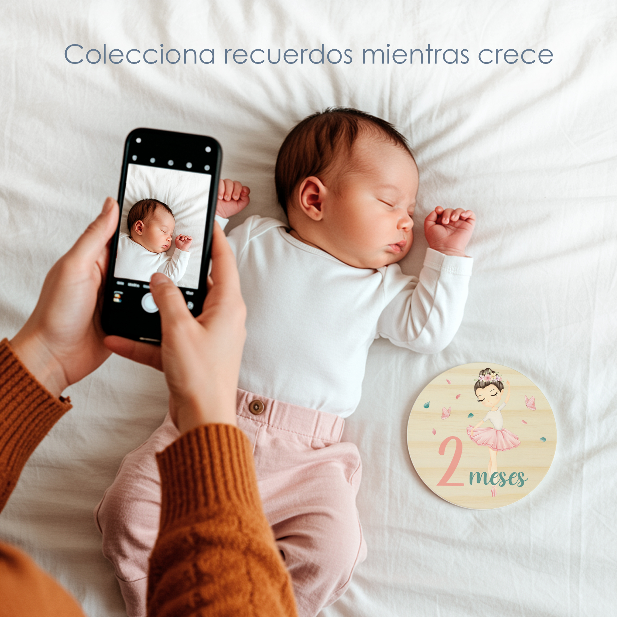 Celebra cada cumplemes de tu bebé con este set de madera de bailarinas, perfecto para fotos inolvidables. El diseño delicado y la calidad del material aseguran que cada sesión sea única y especial.