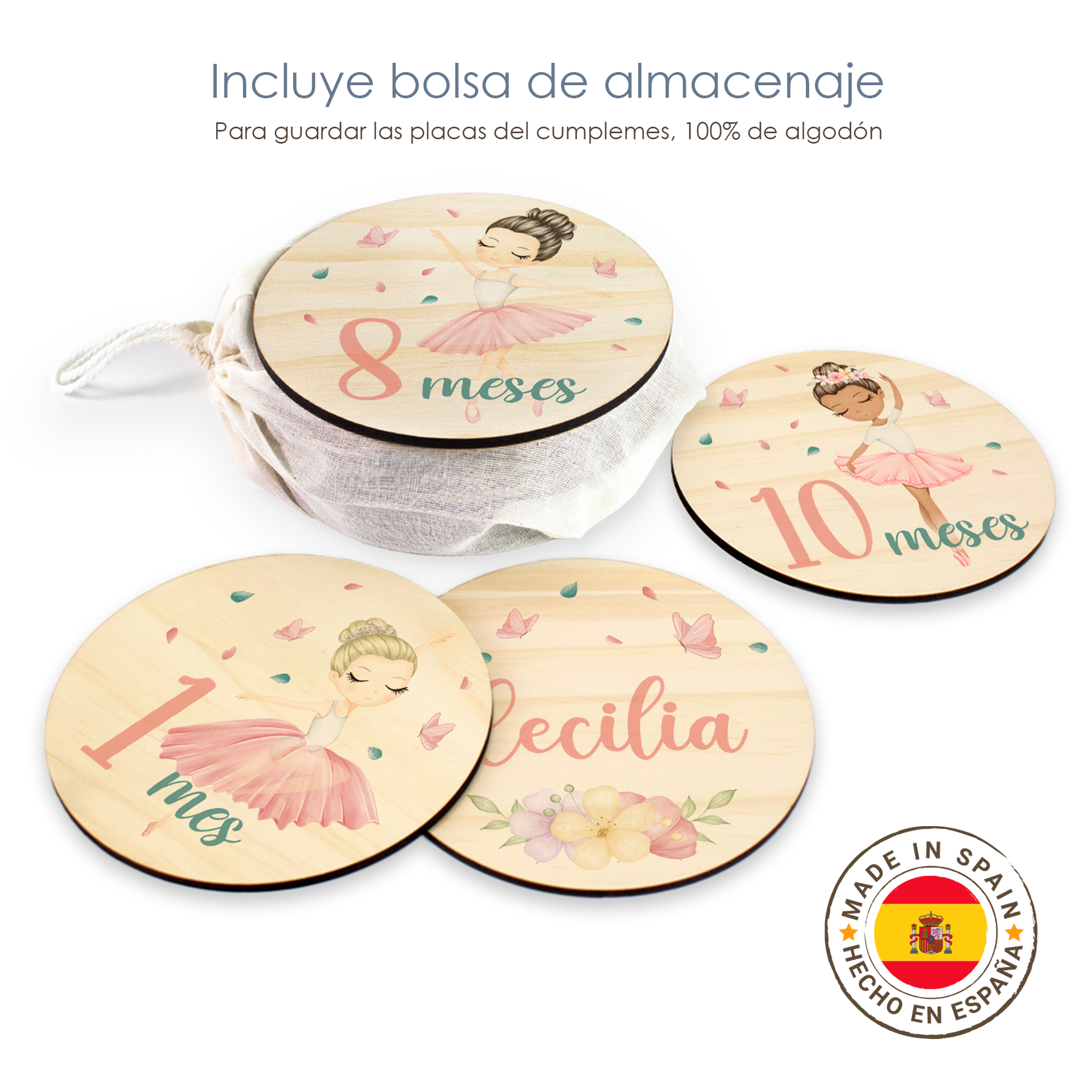 El Set cumplemes bailarina incluye placas de madera decoradas con un diseño delicado y original, perfectas para marcar cada mes del primer año de tu bebé. Las placas están hechas de madera de alta calidad. Estas placas no solo son funcionales, sino que también añaden un toque decorativo a las fotografías de tu pequeño, haciendo que cada imagen sea aún más especial.