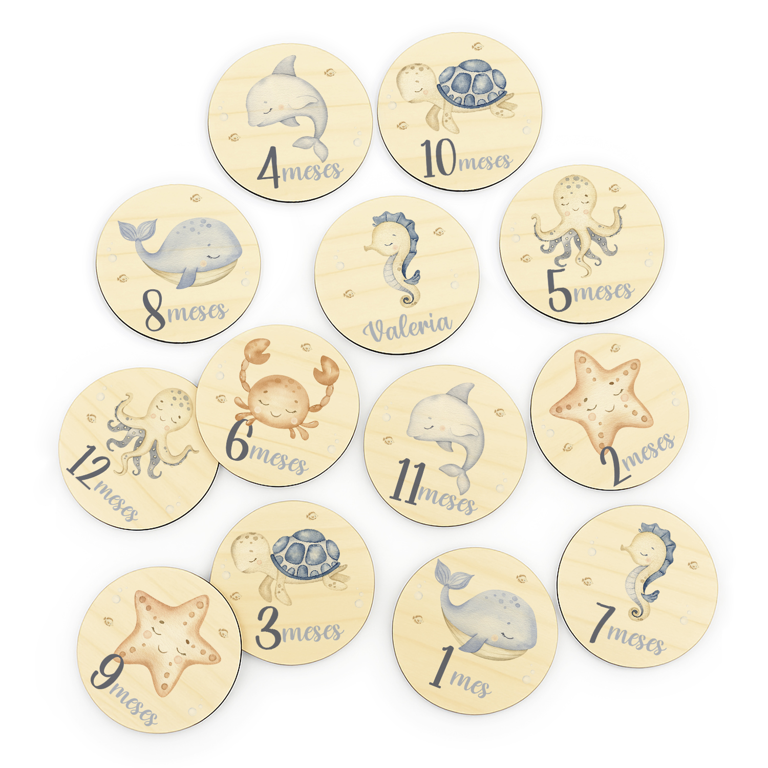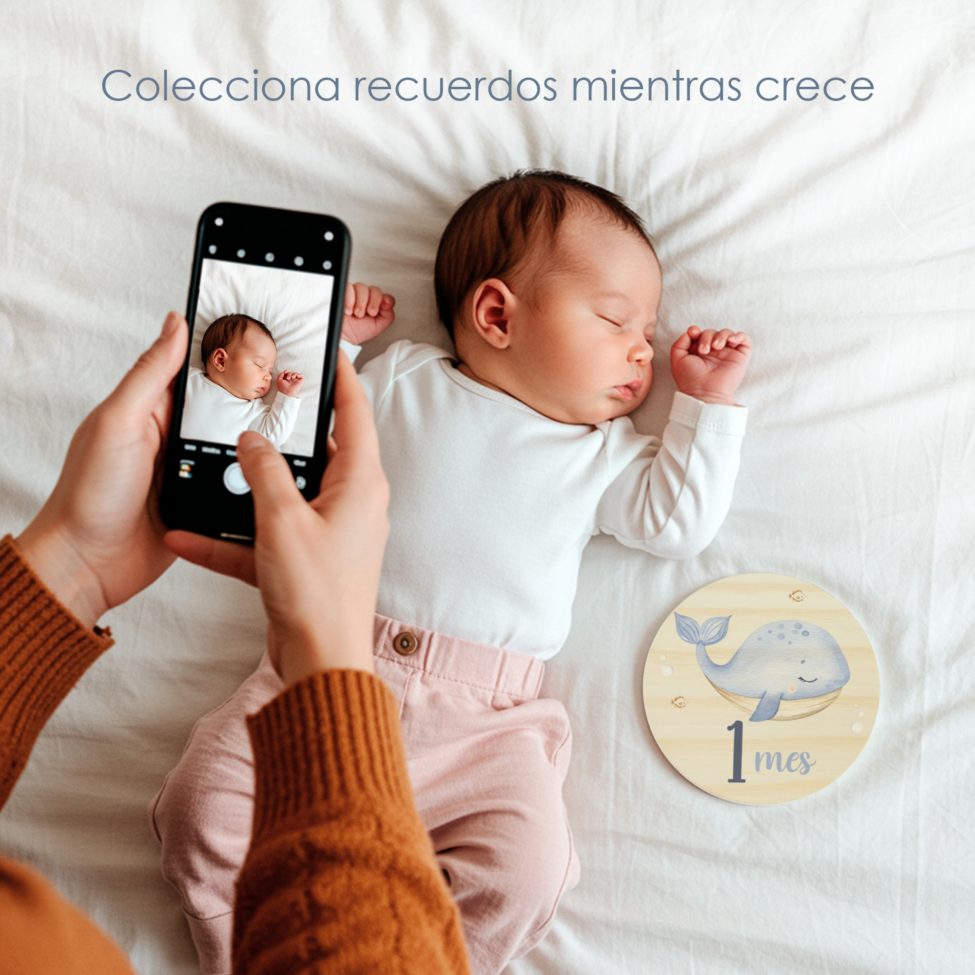 Celebra cada mes del primer año de tu bebé con nuestro Set cumplemes océano, ideal para documentar su crecimiento de manera sencilla y entretenida.