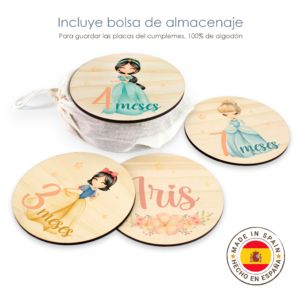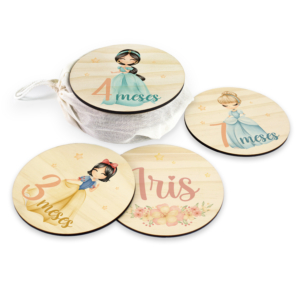 El Set cumplemes princesas incluye placas de madera decoradas con un diseño delicado y original, perfectas para marcar cada mes del primer año de tu bebé. Las placas están hechas de madera de alta calidad. Estas placas no solo son funcionales, sino que también añaden un toque decorativo a las fotografías de tu pequeño, haciendo que cada imagen sea aún más especial.