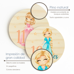 Este set de cumplemes de madera, con encantadores motivos de princesas, es perfecto para decorar sesiones de fotos de tu bebé mes a mes. Fabricado en madera de alta calidad, cada pieza captura momentos mágicos, creando recuerdos inolvidables en cada cumplemes.